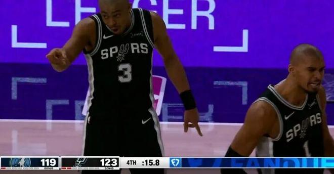 迎着老狐狸的防守,45度角的甩狙3分命中,追到2分直接打停马刺。