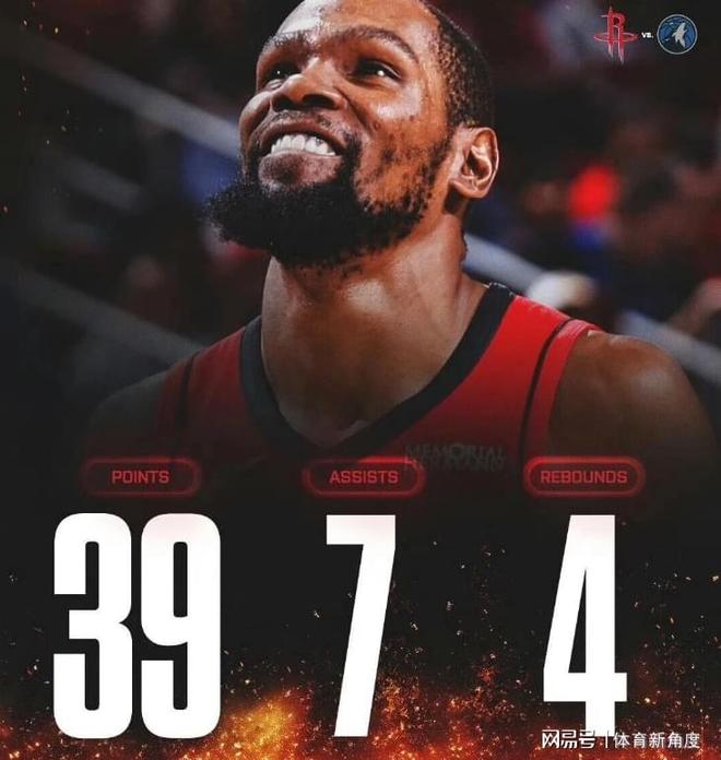 另一边,火箭队以110-105险胜森林狼队,战绩反超湖人队,升至西部第五。此役,背靠背出战的杜兰特展现出了超凡的实力,他亮相40分钟,投篮18次命中11球,三分球8投6中,高效砍下39分,并贡献4个篮板、7次助攻、2次抢断和1次盖帽,成为的最大功臣。尽管杜兰特也已经37岁,但在休斯顿,他依然被当作球队的核心来使用,承担着巨大的比赛压力。