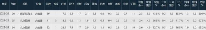 本赛季至今,陈国豪出战16场首发1次,场均上阵17.9分钟贡献6.1分3.8板,投篮命中率43.5%,这位23届状元在换队后发挥照样未达预期,场均得分已来到生涯新低。