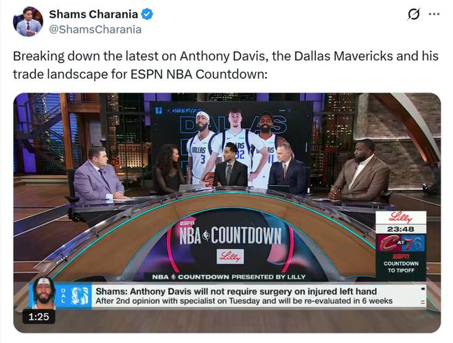 只不过,浓眉哥再次受伤之后,导致其交易价值处于谷底,独行侠并不急于送走他。