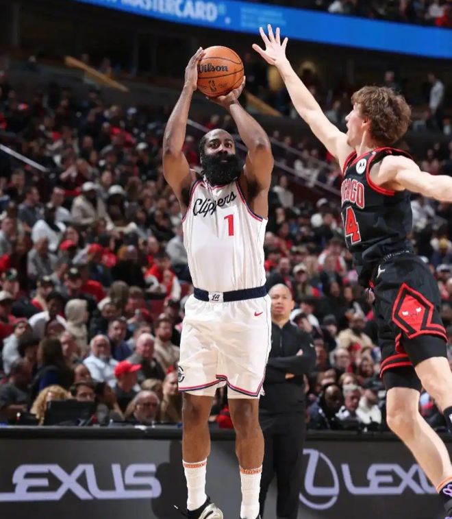 第二节比赛,快船全队三分6中0,公牛三分则14中8,单节净胜26分,真是离谱到家了。