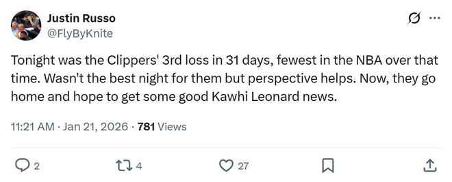 况且正如船记Justin Russo所说,本场比赛球队表现并不完美,但这也只是他们过去31天内的第三场失利,同期联盟最少,所以重要的是积极保持心态,回家后希望能听到关于小卡的好消息。