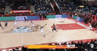 次节萨林杰徐杰休息,胡明轩萨姆纳奎因带队,王洪泽开局飚进三分,奎因轻松突破得手,威尔逊制造2罚后飚进中投,7分55秒,奎因直杀篮下上演炸裂暴扣。