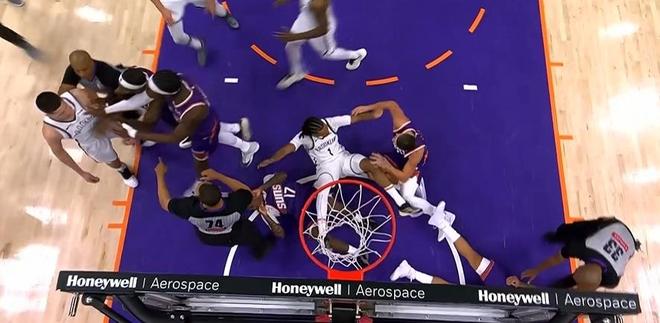 进入第四节比赛,太阳内外开花扩大88-77领先优势,篮网连追3分,邓恩三分命中。篮网内外开花一波19-5攻势反超4分,马威连得4分追到100-100,扎威两罚全中。阿伦上篮与狄龙两罚全中反超2分,奥尼尔与曼恩对喷冲突,随后双方大量球员冲上来卷入冲突,裁判吹罚杰明、曼恩、波特、奥尼尔与阿伦5人技术犯规,阿伦罚球不中。篮网24秒违例,阿伦高难度打板命中扩大4分优势,波特三分不中,最终太阳险胜篮网。