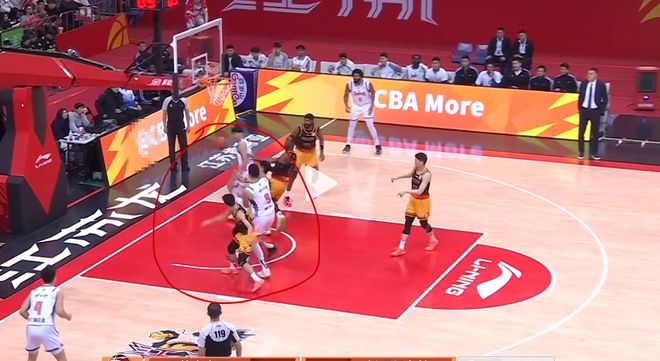 阵地战防守,庞峥麟也有出色表现。这一球庞峥麟发现队友补防后漏人,自己又去帮队友协防卡位,并且协防成功,让新疆球员吴冠希接球失误,说明他拥有不错的团队防守意识