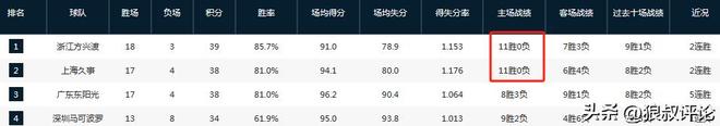 对比到上个赛季的艰难开局,引发刘鹏下课等糟糕的战绩,上海男篮目前的战绩为17胜4负,排在联盟第二的位置。毫无疑问是新赛季争冠热门行列,而不败主场战绩证明卢伟对于这一支球队的掌控达到了非常高的水准。