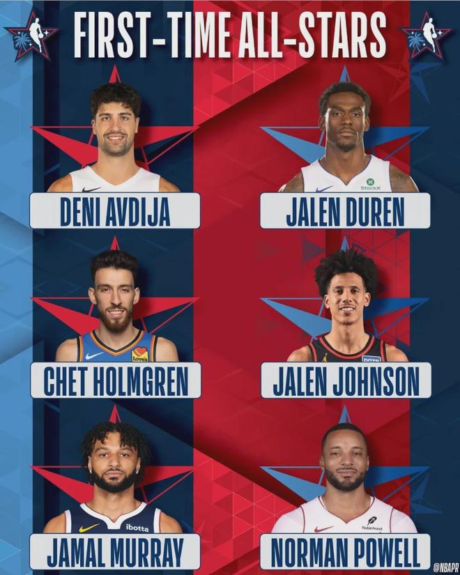 今年NBA全明星正赛,有6名球员是生涯首次入选:诺曼-鲍威尔、贾马尔-穆雷、杰伦-约翰逊、杰伦-杜伦、阿夫迪亚、切特-霍姆格伦。这其中生涯最长的就是鲍威尔,他在联盟打了11个赛季才入选全明星,排名NBA历史第三晚。