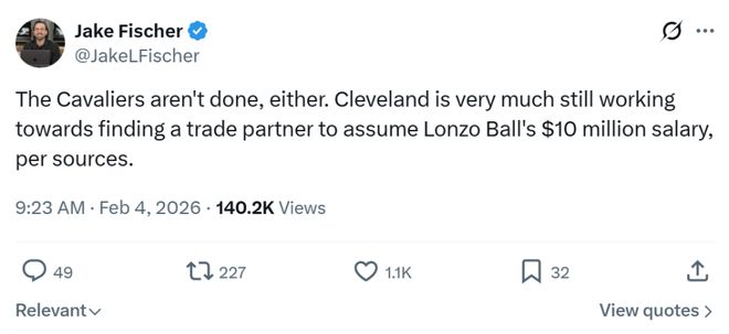 名记Jake Fischer就在哈登交易后第一时间曝出,骑士队的运作还没有结束。