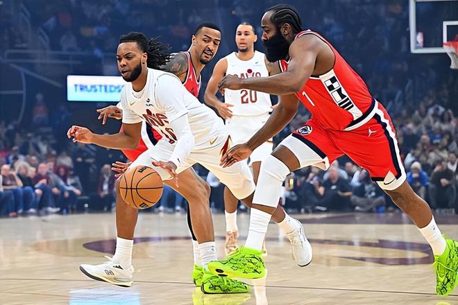 本赛季哈登的表现比较一般,他的状态随着赛季的深入也是在逐渐下滑的,他的进攻效率也是在不断走低之中。再加上哈登自己也想离开球队,这种情况下快船将哈登送走,当然也不是什么非常奇怪的事情。只是问题就在于,相比于哈登,加兰的表现真是太糟糕了。看起来加兰能够在进攻端保持不错的效率,在得分和组织方面起到基本的作用。然而从实际情况来看,加兰在防守端的表现一塌糊涂,防守效率值为119.1,排名联盟第279位,净效率值为-5.5,排名联盟第241位,在场上对于球队的负面影响肉眼可见。加兰出场的这26场比赛中,骑士的战绩为12胜14负,而加兰没出场的25场比赛,骑士的战绩为18胜7负。换句话说,加兰不出场,骑士依然是东部前几的强队,但加兰一出场,骑士妥妥就是一支附加赛级别的球队。