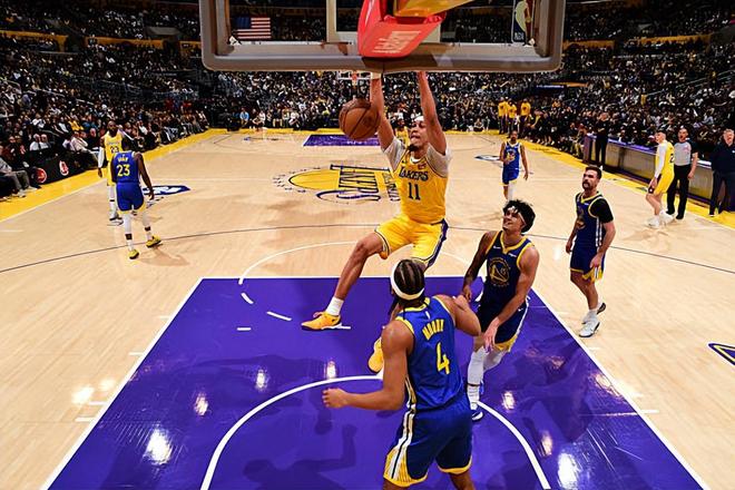海斯本赛季的整体表现还是比较稳定的,他在进攻端的效率相当突出,算是联盟中非常优秀的吃饼球员了,在球队拥有顶级组织者的情况下,他在进攻端还是能够起到作用的。海斯在防守端的能力比起之前也算是有了一定程度的提升,至少也能够在防守端做到不经常失位,能够给对手制造一定的威胁了。问题就在于,海斯的个人能力与一名合格的先发中锋还是存在着不小的差距的。本场比赛海斯的表现也是再一次证明了这一点。海斯无法胜任先发中锋,德安德烈-艾顿(DeAndre Ayton)的状态始终起起伏伏,这也是湖人的潜在隐患。