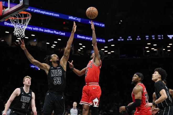 篮网击败公牛,中锋克拉克斯顿打得超级高效。上半场他8投7中,罚球4中1,拿到15分6篮板1抢断。