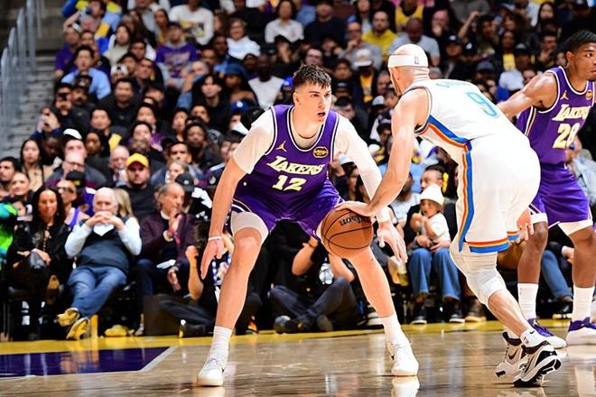 本场比赛中,湖人的先发大锋线新星杰克-拉拉维亚(Jake LaRavia)的表现显然并不能令人感到满意。拉拉维亚全场出场24分02秒,投篮8中3,三分线外6中2,罚球6中2,得到了14分4篮板1助攻1抢断1盖帽的数据,还有1次失误和3次犯规,正负值为-9。拉拉维亚在进攻端的效率依然是比较一般的,他也没有办法得到更多的分数,他在空位三分方面的把握度也是非常有限的。拉拉维亚在防守端的态度还是值得肯定的,然而实际情况是,他在防守端的贡献度也并没有那么突出,同样很难起到更大的作用。拉拉维亚还是没有办法发挥出更大的作用,在场上对于比赛的影响力依然是比较有限的。