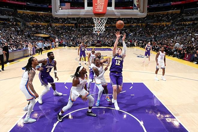 在此前的一场NBA常规赛中,俄克拉荷马城雷霆经过苦战后以119比110战胜了主场作战的洛杉矶湖人。本场比赛后,结束了两连败的雷霆的战绩提升到了41胜13负,继续排名西部榜首位置,与身后的圣安东尼奥马刺的胜场差为4场;而结束了3连胜的湖人的战绩则是下滑到了32胜20负,继续排名西部第5位,与身前的休斯顿火箭和身后的明尼苏达森林狼的胜场差均为半场。