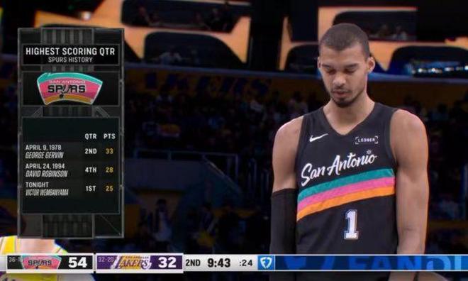 一,文班亚马首节25分,创造生涯单节得分新高纪录。