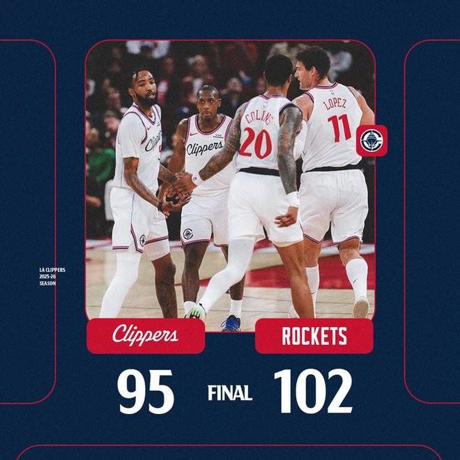 北京时间2月11日,NBA常规赛,洛杉矶快船客场95-102输给休斯顿火箭,快船的战绩也来到25胜28负。