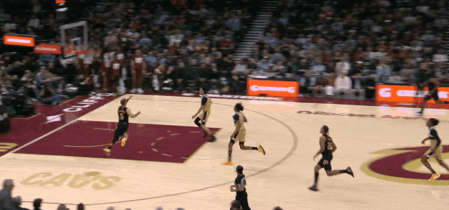 哈登和加雷特二人转后,喂梅里尔远射。上半场末尾,梅里尔快下接传球,和跟进的哈登一个二人传接,远射。