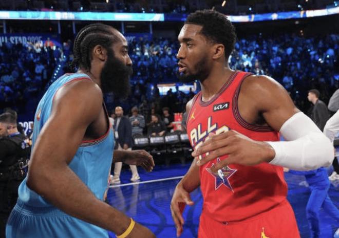 而即便是现在36岁的哈登,他的场上影响力也不比任何一个球星差。从快船被交易到骑士后,目前哈登为骑士出战了两场比赛,虽然场均产量并不多,但两场都在关键时刻发挥作用,帮助骑士队逆转比赛。其中哈登的骑士首秀对国王,他末节独得15分,4投全中,还包括三个关键时刻的三分球。第二场面对西部排名前三的掘金,哈登又是在末节关键三分追平比分,再由米切尔完成罚球绝杀。在本赛季东部赛区球星相对匮乏的情况下,哈登和米切尔的超级后场双人组,真是有说法的,可能是东部级别最高的一个双人组了吧,用米切尔的话说,当哈登加入我们之后,一切都变得简单了。
