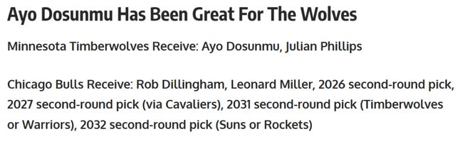 公牛得到:迪林厄姆+伦纳德-米勒+4个次轮签。