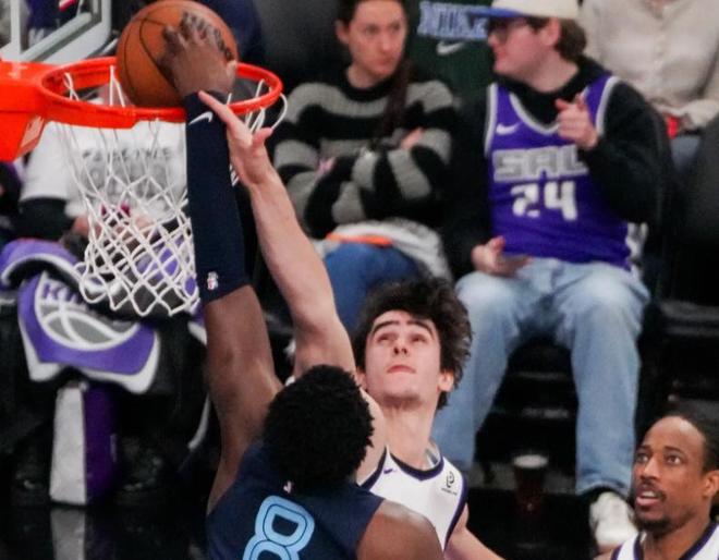 首节开打,德罗赞背身跳投稳稳命中,国王队先声夺人。雷诺篮下接球勾手命中,随后空接暴扣再得手,一人连拿4分,国王开局8-2领先灰熊,今天睡醒了要结束连败?斯宾塞三分线外急停跳投命中,及时止血,接着突破后极限挑篮再中,灰熊回敬一波8-2追平比分。雷诺中距离跳投也有,状态真好,威少连续出现低级失误,灰熊接连反击打成。阿丘瓦后仰跳投命中后再补篮得手,蒙克压哨三分再中,首节打完,国王33-25领先灰熊8分。