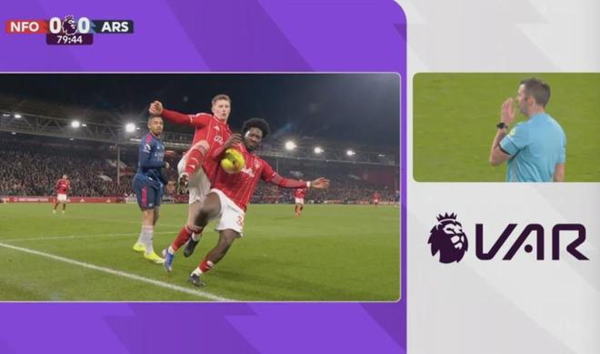 但这球最大的问题是,其实并没有阿森纳球员在参与争抢,这球埃纳用不用手,都无法改变热苏斯已经完全丢掉了球权的现实(森林球员客观上没有通过手球来获益),假设热苏斯这时候就在旁边,对球权还有控制的可能,我认为是100%的点球,但这属于主观解释了。