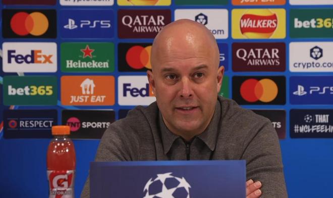 欧冠联赛阶段第8轮,利物浦主场6-0大胜卡拉巴赫,赛后,红军主帅斯洛特出席新闻发布会接受媒体提问。