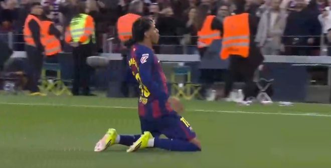 远射世界波!亚马尔滑跪庆祝,创西甲单季纪录,5场连造6球