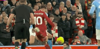 第98分钟,利物浦球员麦卡利斯特禁区外凌空扫射,直奔球门左上角,多纳鲁马飞身单掌将球扑出,曼城差点被绝平!