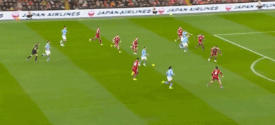 下半场开始后,场上风云突变,利物浦大举压上,曼城越踢越被动。