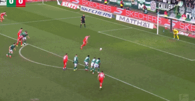 第29分钟,凯恩回撤接应,一脚手术刀直传打穿不莱梅的后防线,路易斯-迪亚斯左路高速插上,小角度射门被巴克豪斯扑出。