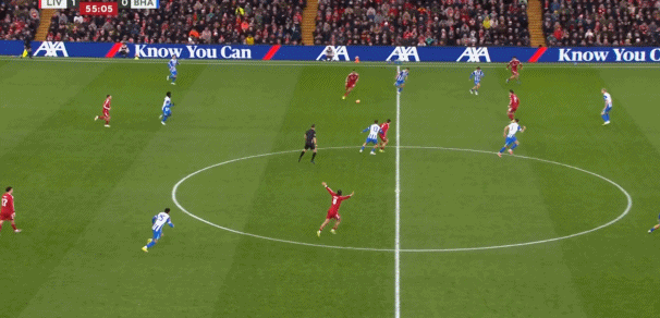非常活跃的加克波,在第36分钟攻破海鸥军团的球门,可惜越位在先,进球被主裁判取消,狂攻不止的利物浦,在第42分钟终于打破场上平衡,凯尔凯兹左路下底传中,琼斯门前包抄破门,将比分改写为了1-0,半场比赛结束前,布莱顿本有机会扳平比分,但迭戈戈麦斯的打门被阿利森神勇扑出。
