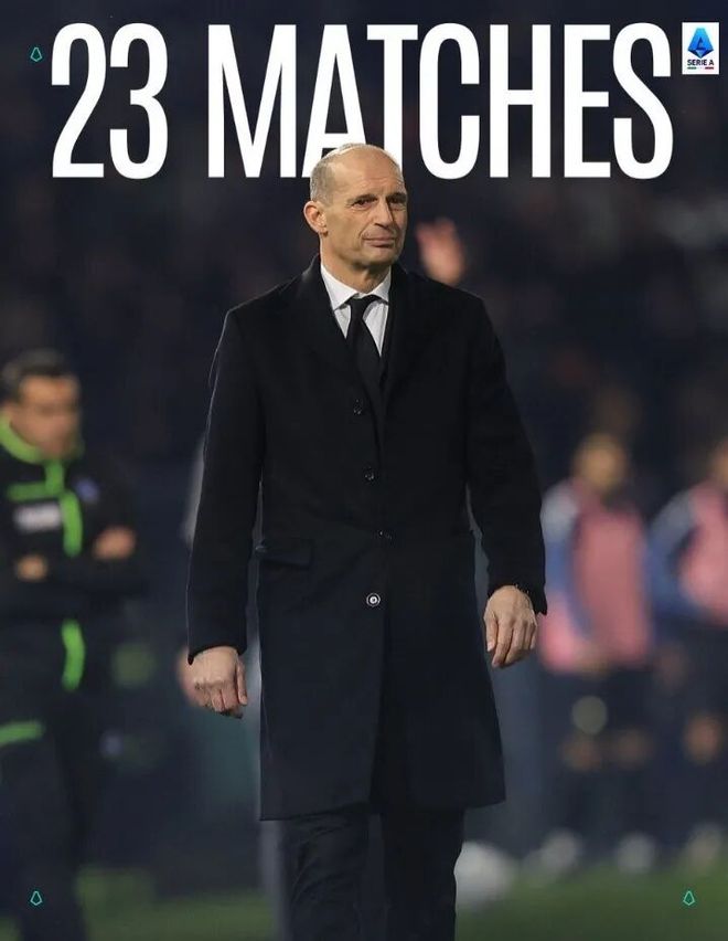 意甲官方也晒出阿莱格里海报,配文写道:“阿莱格里执教下的AC米兰是目前五大联赛最长不败场次保持者。”